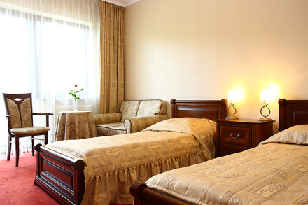 3 двух-, трех- и четырехместными апартаментами (в одной ванной комнате находится ванная с гидромассажем, в другой – кабина с гидромассажем).