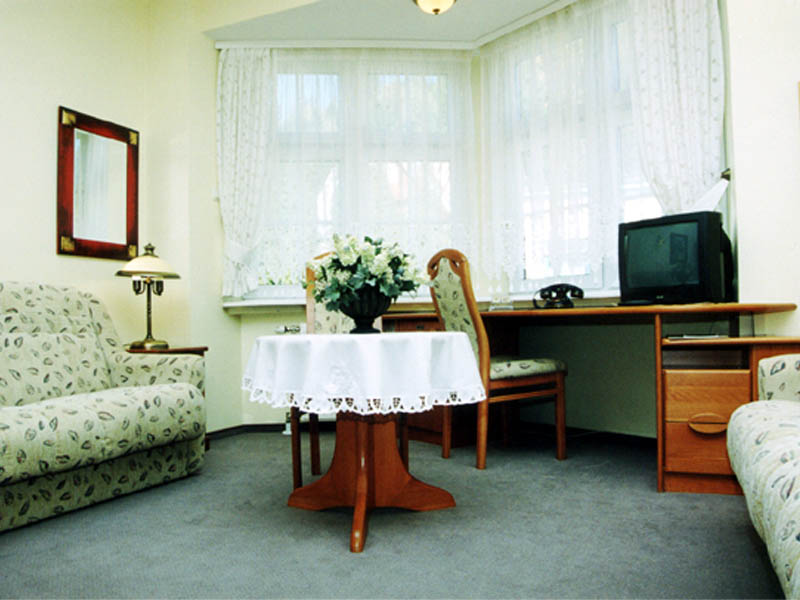 К услугам гостей 3 одноместные номера, 9 двухместных и 3 двухместные апартаменты. Максимальное количество гостей с доставками – 35. В каждом номере удобства, телевизор, телефон, холодильник. Апартаменты – спальня, салон, санузел. Возможность доставки в двухместный номер и размещение 4 человек в двухместном апартаменте.