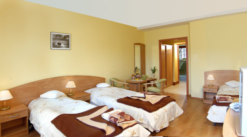 Санаторий располагает 71 местом в одно-, двух- и трехместных номерах с удобствами и звуковой сигнализацией.