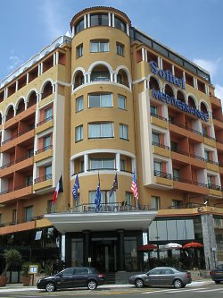 ресторан Le Mediterranee - гастрономический ресторан французской кухни. Расположен на крыше отеля, откуда открывается прекрасный панорамный вид на бухту, массив холмов Эстрель и город. Столики сервируются около бассейна. Открыт: 12:30 - 14:30, 19:30 - 22:30