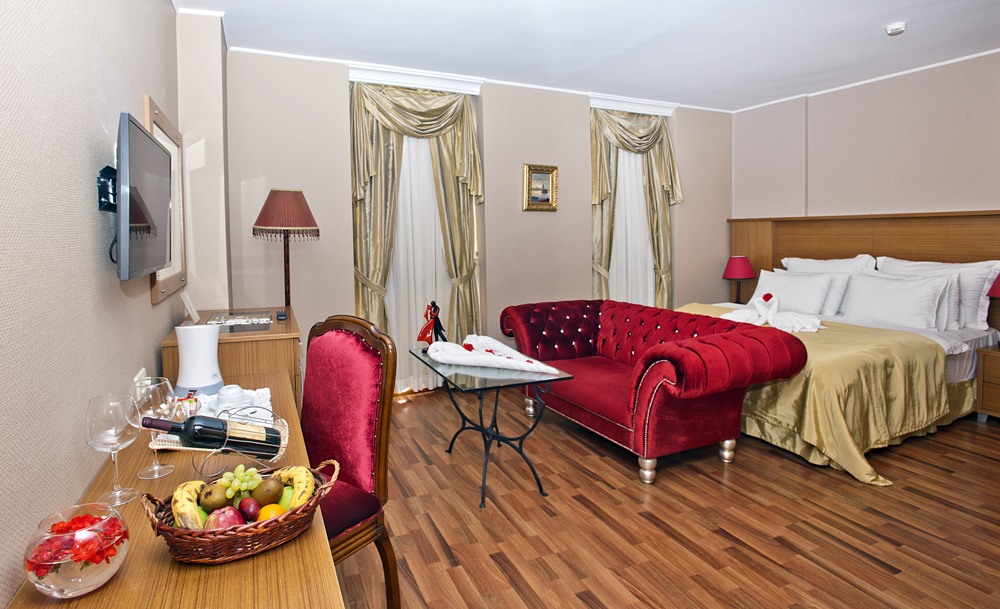 Сотрудники стойки регистрации работают круглосуточно. Информацию о прокате автомобилей вы найдете в экскурсионном бюро отеля Antik.