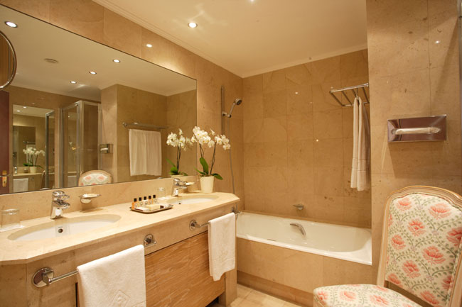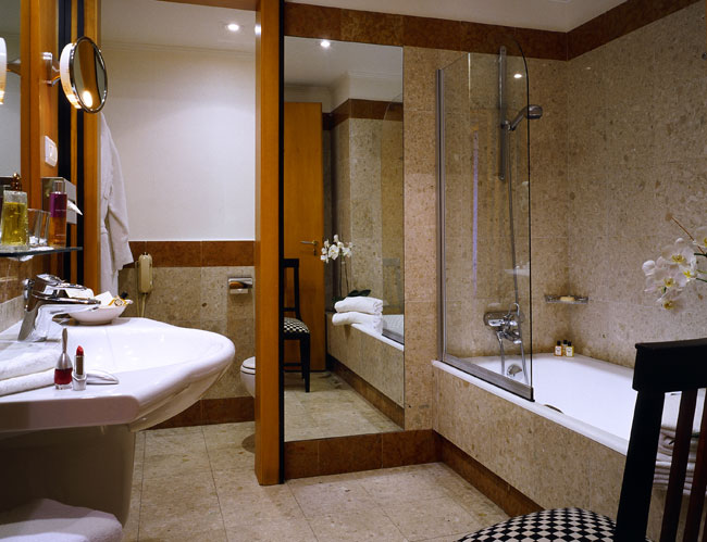отделанная мрамором ванная комната с ванной (+ отдельная душевая кабина в номерах категории Executive, Prestige и Suites)