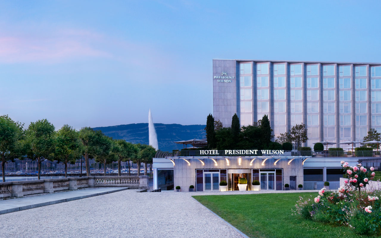 Royal Penthouse Suite: 1680 м2. Роскошные апартаменты с персональным лифтом, занимающие весь последний этаж отеля и включающие: 12 спален, 12 ванных комнат, фитнес-зал, бильярдную, гостиную-салон с роялем Steinway, просторную панорамную террасу с захватывающим видом на Женеву и озеро.