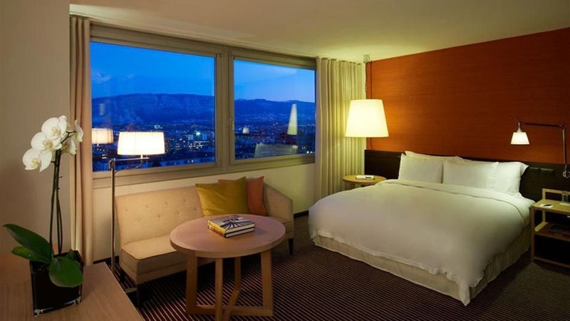 В отеле имеется 334 комфортабельных номера, в том числе 103 сьюта, 234 номера с односпальными кроватями, 94 номера с двуспальными кроватями и 220 номеров для некурящих. Из окон номеров и сьютов открываются панорамные виды на Монблан и горы Юра. В каждом номере гостям предоставляется высокоскоростной доступ в Интернет, рабочий стол, сейф и другие удобства 5-звездочного швейцарского отеля.
