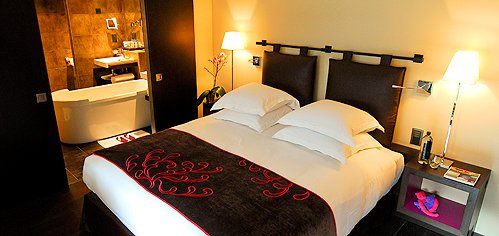 Suite Duplex - номер площадью 53 кв.м., остекленный по всей высоте, выходит во внутренний дворик, утопающий в зелени, что дает уникальную возможность насладиться островком безмятежности в самом сердце города. На нижнем этаже находится просторная гостиная с рабочим столом и душевая комната, над ними спальня и ванная комната с ванной в центре и со встроенным в стену инкрустированным телевизором-зеркалом. В этом номере дополнительно установлена душевая кабина и вторая раковина. Также в номере имеется регулируемое освещение, кабельное интерактивное телевидение, телевизор с диагональю экрана 32 и 42 дюйма, док-станция для iPod, фотопринтер, DVD проигрыватель, бесплатный беспроводной доступ в Интернет, сейф, мини-бар, кофе-машина Nespresso, постельное и ванное белье фирмы Frette, косметические средства марки Anne Semonin.