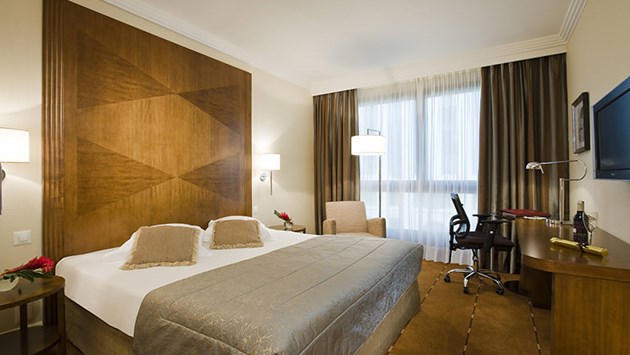 Business Room (20 кв.м.) - номера, расположенные на верхних этажах отеля и предназначены для некурящих гостей. Номер, кроме стандартного набора характеристик, таких как кондиционер, бесплатный беспроводной доступ в Интернет, радио, мини-бар, 26-дюймовый телевизор с плоским экраном, телефон с голосовой почтой, платные телеканалы, все необходимое для приготовления чая или кофе, сейф, фен, дополнительно включает тапочки и халат, бесплатный континентальный завтрак в баре Teseo, бутылку воды и услугу глажки одной рубашки в день. Номера предназначены для некурящих гостей.
