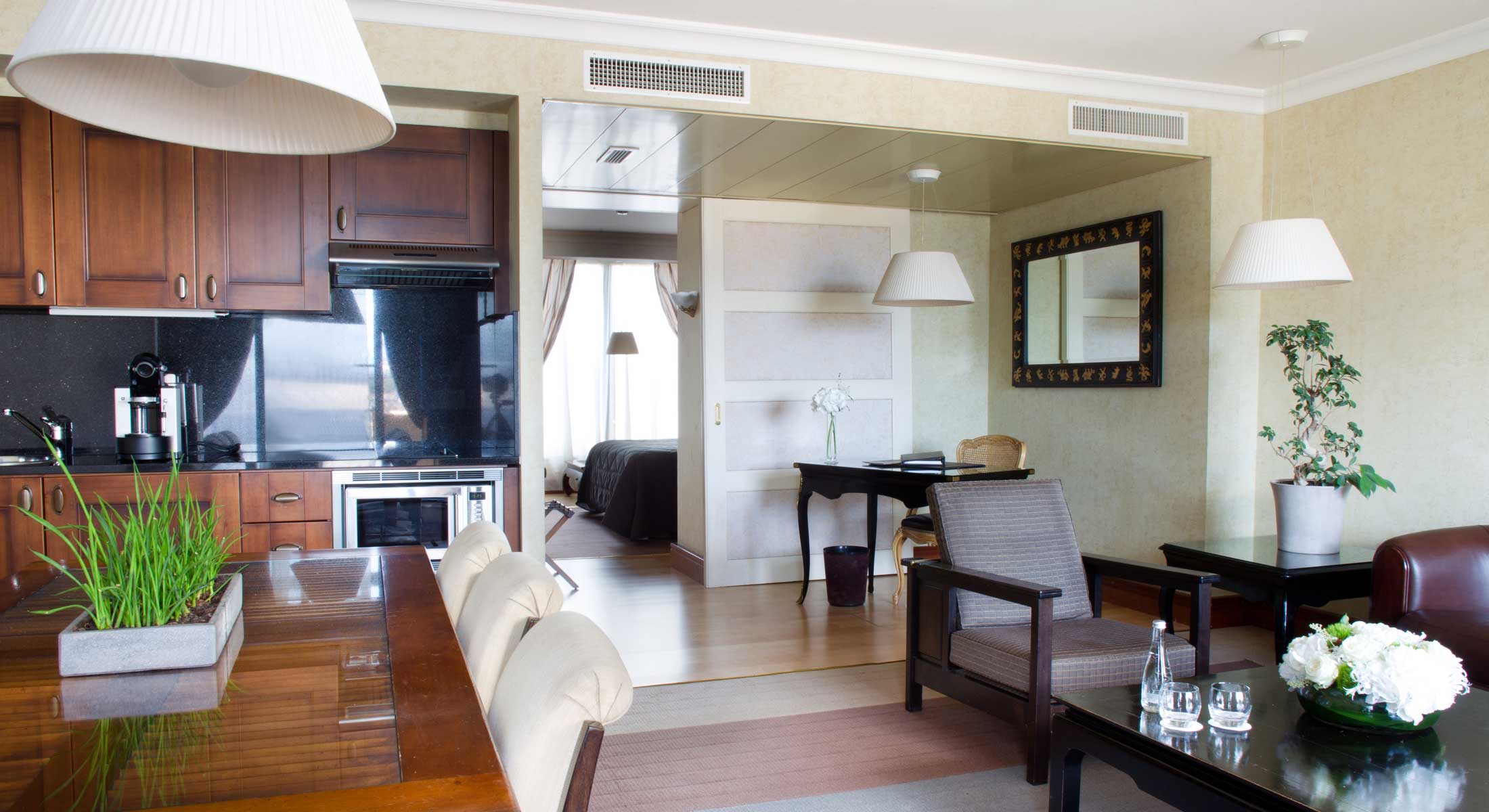 Family Suite - просторный номер сьют площадью 90 кв.м. с отдельной спальней и кроватью king-size, просторной гостиной с удобным диваном, хорошо обустроенной кухней, столовым залом и обеденным столом на 8 персон. Также в номере имеется бесплатный беспроводной доступ в Интернет, 3 телевизора с плоским экраном с коллекцией фильмов и игр по запросу, кофе-машина Nespresso.