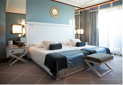 Телевизор, телефон, радио, сейф, кондиционер, мини-бар, DVD-плеер; Ванная комната выложена итальянским мрамором и венецианской мозаикой, фен, туалетные принадлежности; Доступ в Интернет