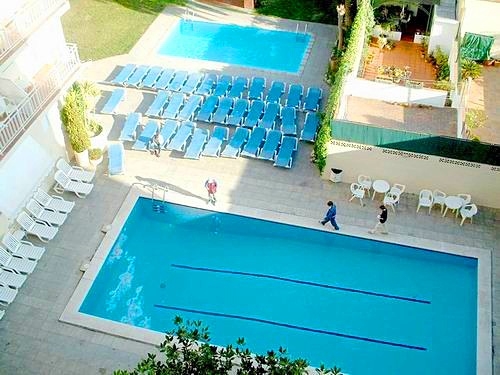 - Открытый бассейн, лежаки и зонты у бассейна;