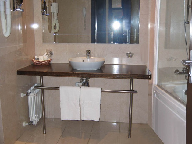 7 этажей, 2 лифта, 98 двухместных номеров, 7 апартаментов