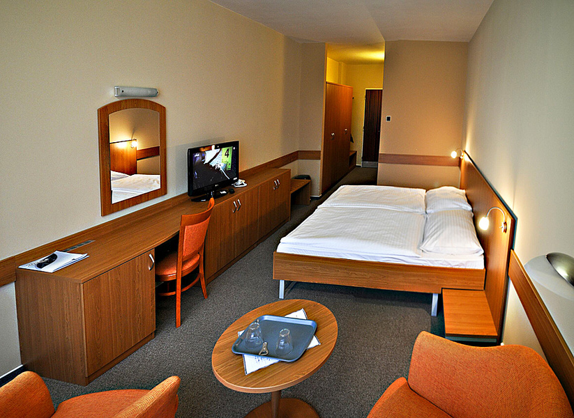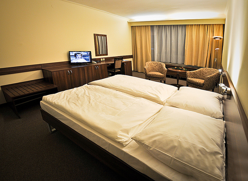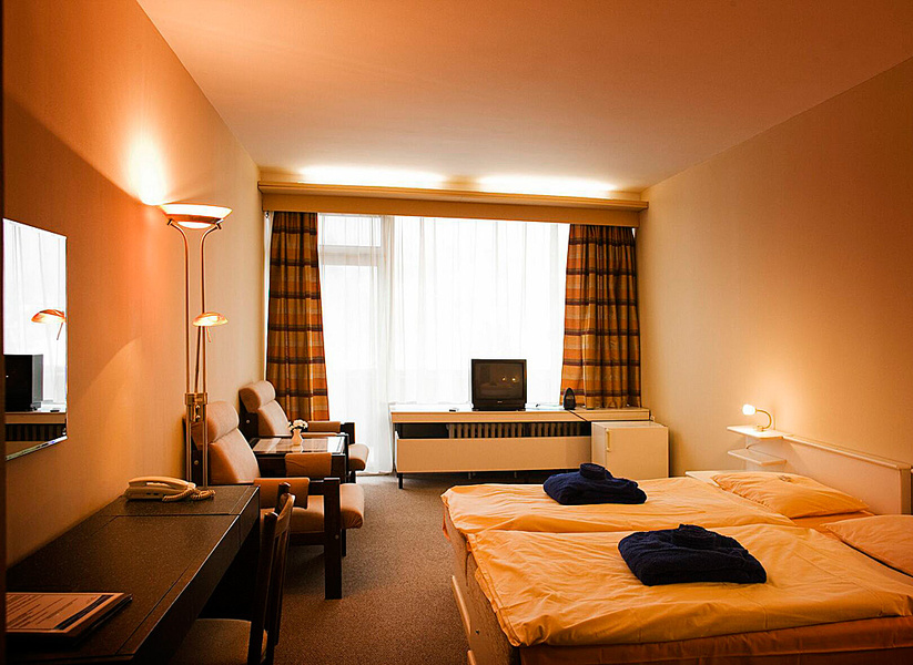 Курортная гостиница Крым находится непосредственно в центре городка на Курортной площади. Благодаря доступности процедур, медицинского обслуживания и питания в рамках одного дома и прямого соединения с внешним плавательным бассейном Гранд является самой комфортабельной гостиницей курорта. Вместимость курортной гостиницы – 290 кроватей на 6 этажах. Гостям предлагает размещение в двухместных номерах и апартаментах категории комфорт, стандарт и эконом.