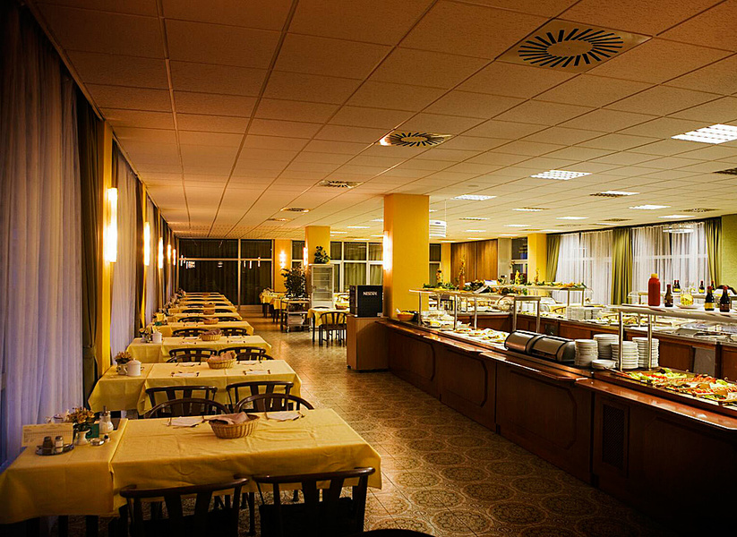 Завтрак – шведский стол, обед и ужин – выбор из 5 блюд, возможность выбора из меню ресторана за доплату.