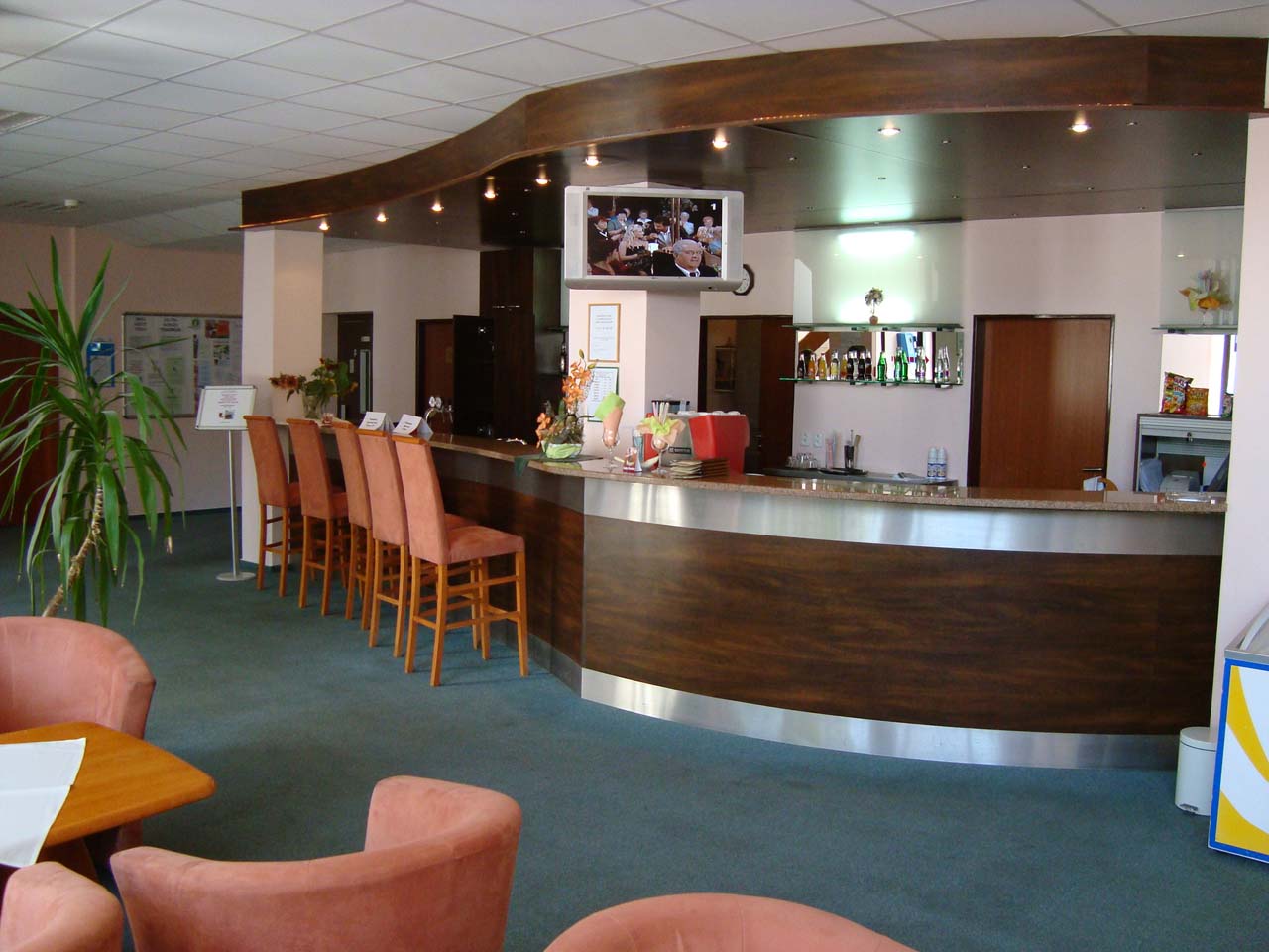 - Стандартный номер: комната с ванной, телевизор со спутниковыми каналами, телефон и холодильник.