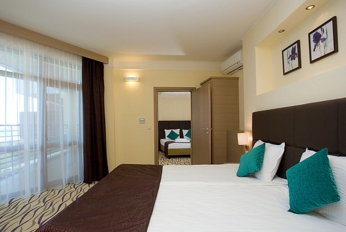 Maisonettes Grand Superior: 166 кв.м, расположен на 9 этаже с прекрасным видом на море и Албену. 3 спальни и гостиная. Кровати: одна – 200х200, одна – 160х200, одна – 100х200. Вместимость – 7 чел.