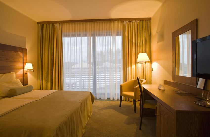 В новом корпусе отеля все номера категории «superior». Они оборудованы большими кроватями длиной 210 см. до 250 см. Половину номеров с видом на «Снежный стадион» и большинство из них с балконами. С противоположной стороны отеля открывается вид на г.Марибор.