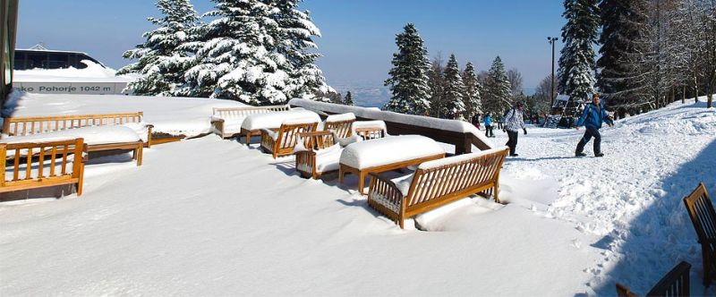 Отель BELLEVUE **** на Мариборском Похорье расположен на высоте 1050 метров над уровнем моря, непосредственно возле подьемников.