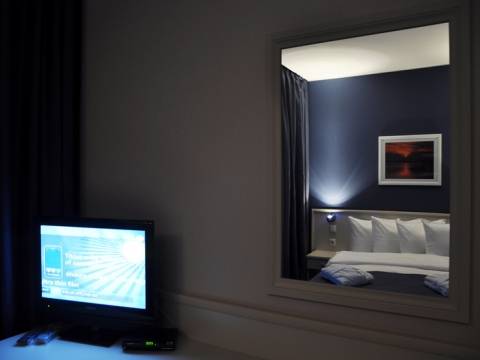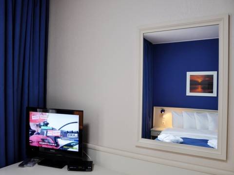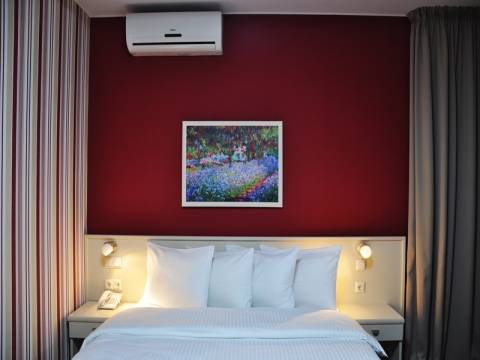 - В номерах: есть рабочий стол и собственная ванная комната с феном и халатами. Из каждого номера с индивидуальной меблировкой в современном стиле открывается потрясающий вид на город. Есть кондиционер, центральное отопление, телефон, сан- узел, бесплатный интернет (Wi- Fi), мини бар, балкон, спутниковое телевидение(500 каналов) .