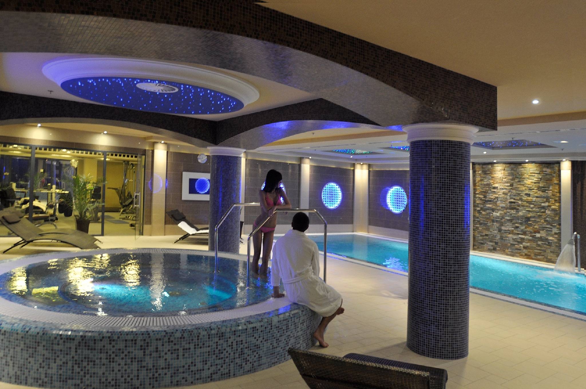 собственный оздоровительный центр (тренажерный зал, плавательный бассейн с эффектом речного течения, джакузи, финская сауна, сауна с инфракрасными лучами, бассейн с холодной водой, массаж).