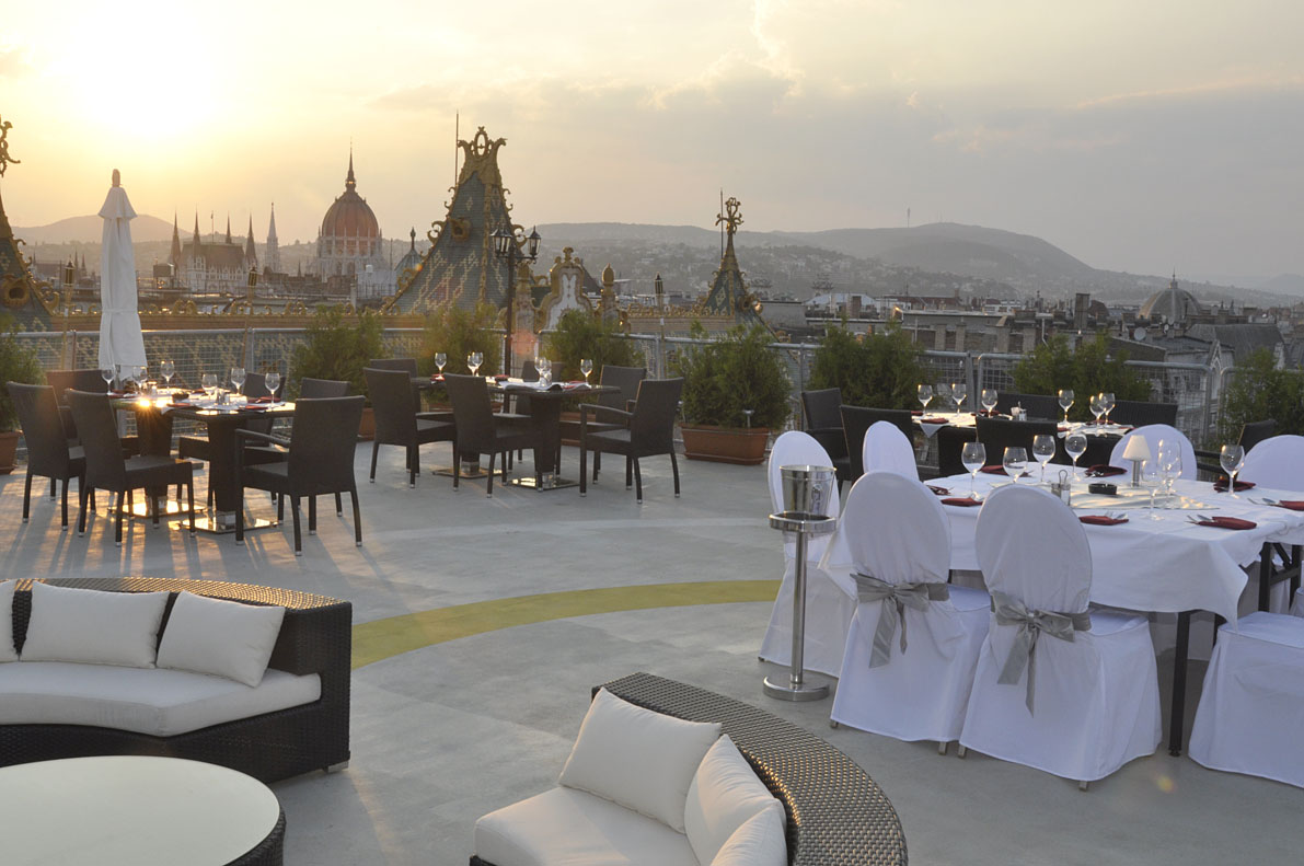круглогодний кафе-ресторан "Интермеццо", а также летняя терраса на крыше отеля с панорамным видом на Будапешт. Деликатесные блюда венгерской и международной кухни в разных ценовых категориях удовлетворят любые запросы.