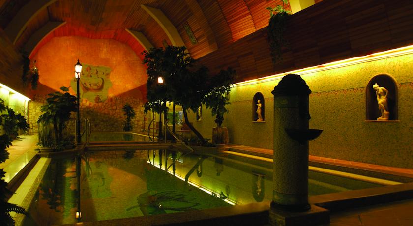 Обновлённый в 2001 году бассейн получил новое лицо: римские купальни с современным комфортом - неповторимое и оригинальное сочетание! Рядом с двумя бассейнами расположены две whirlpool- ванны, зал отдыха и бассейн-Кнейп, где можно освежить себя утром, шагая в холодной воде по тёплым камешкам.