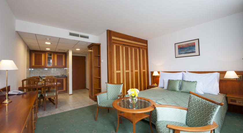 Просторный атриум импозантного отеля возвышается над живописными окрестностями,известными своими волшебными, целебными термальными водами. 165 со вкусом оборудованных номеров,а также комфортабельных аппартаментов ждут гостей,желающих обрести гармонию души,тела и разума. В нашем отеле все направлено на то,чтобы гость чувствовал себя комфортно