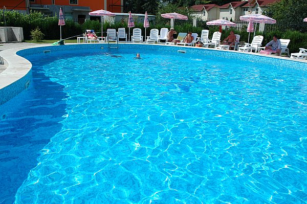 - Открытый бассейн с минеральной водой, зонты и лежаки у бассейна;