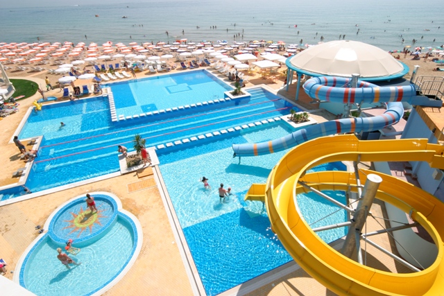 - Детский бассейн, водные горки, детская игровая комната, детская площадка;