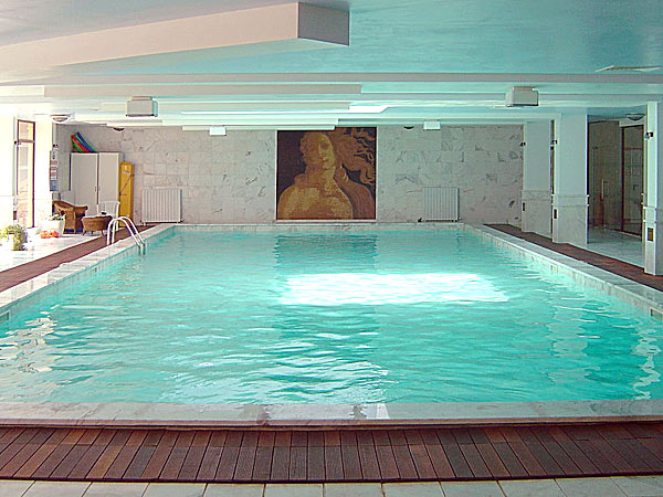 - Закрытый бассейн, открытый бассейн, зонтики и шезлонги у бассейна;
