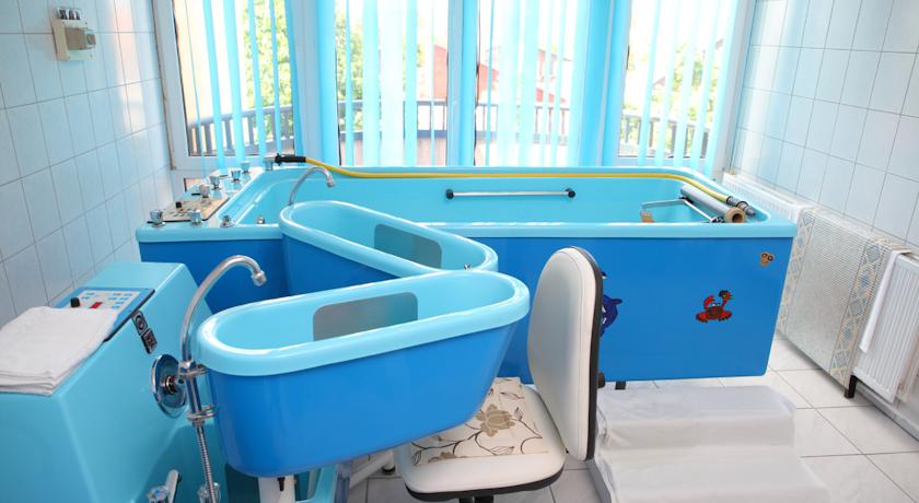 - Лечебный комплекс: диагностический центр, бальнео и гидротерапия, механическая терапия, электротерапия, фототерапия, ингаляция, специальные процедуры (свинец, Ritex ), зубная клиника
