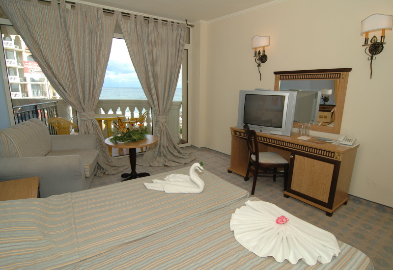 - Спутниковое ТВ, телефон, кондиционер, мини-бар ($), сейф,, WC (ванна). сушилка для белья, пол – ковролин;