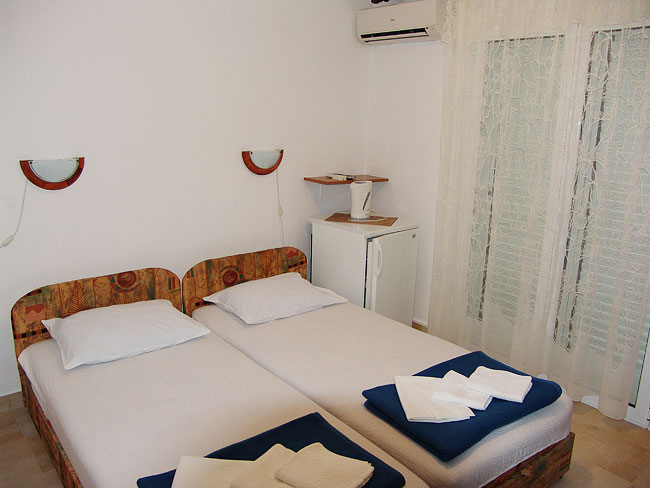 Мелкогалечный, в 250 метрах от отеля. Зонтики и лежаки ($)
