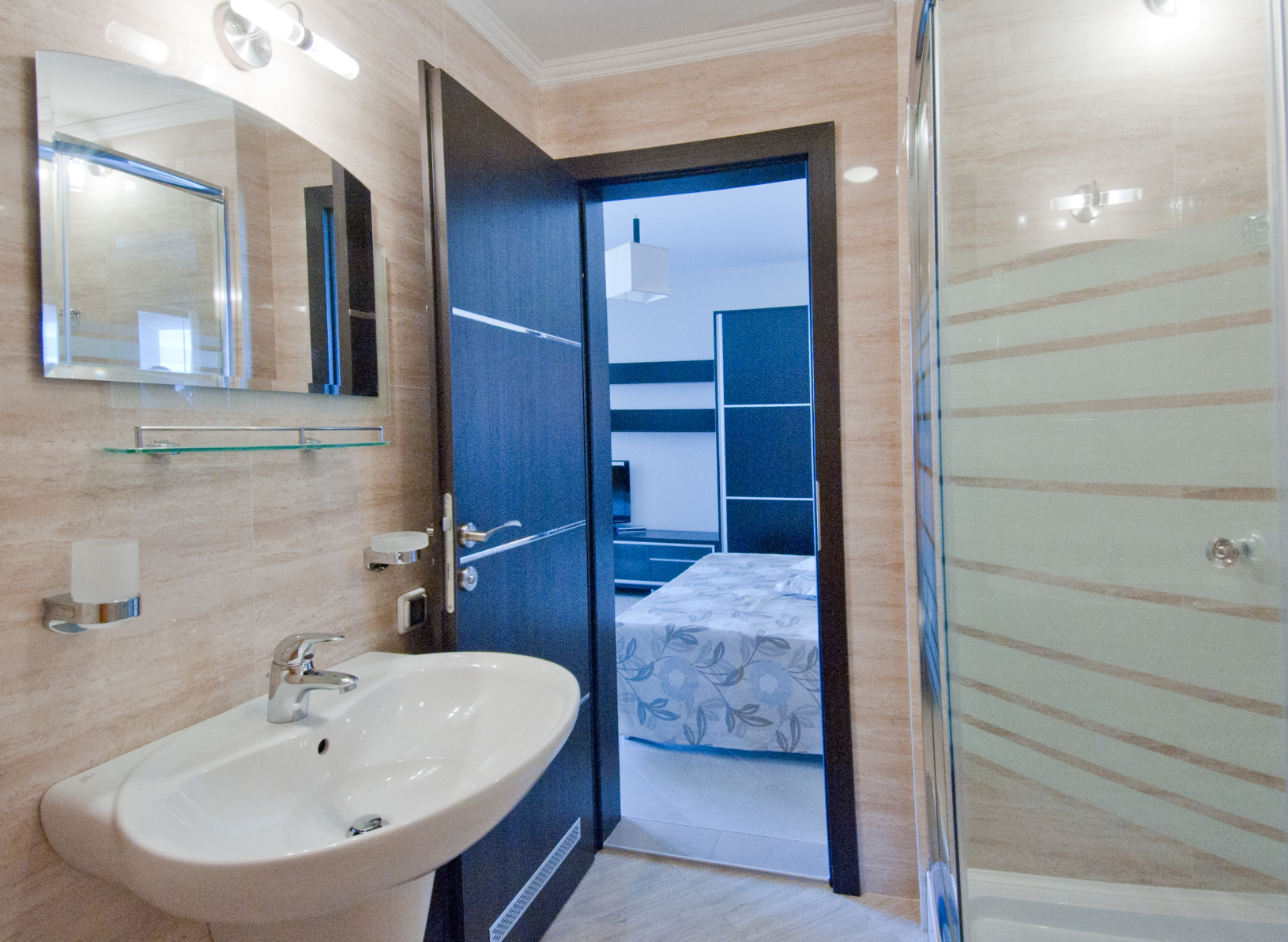- В апартаменте: гостиная с одной спальней, разделенные дверью