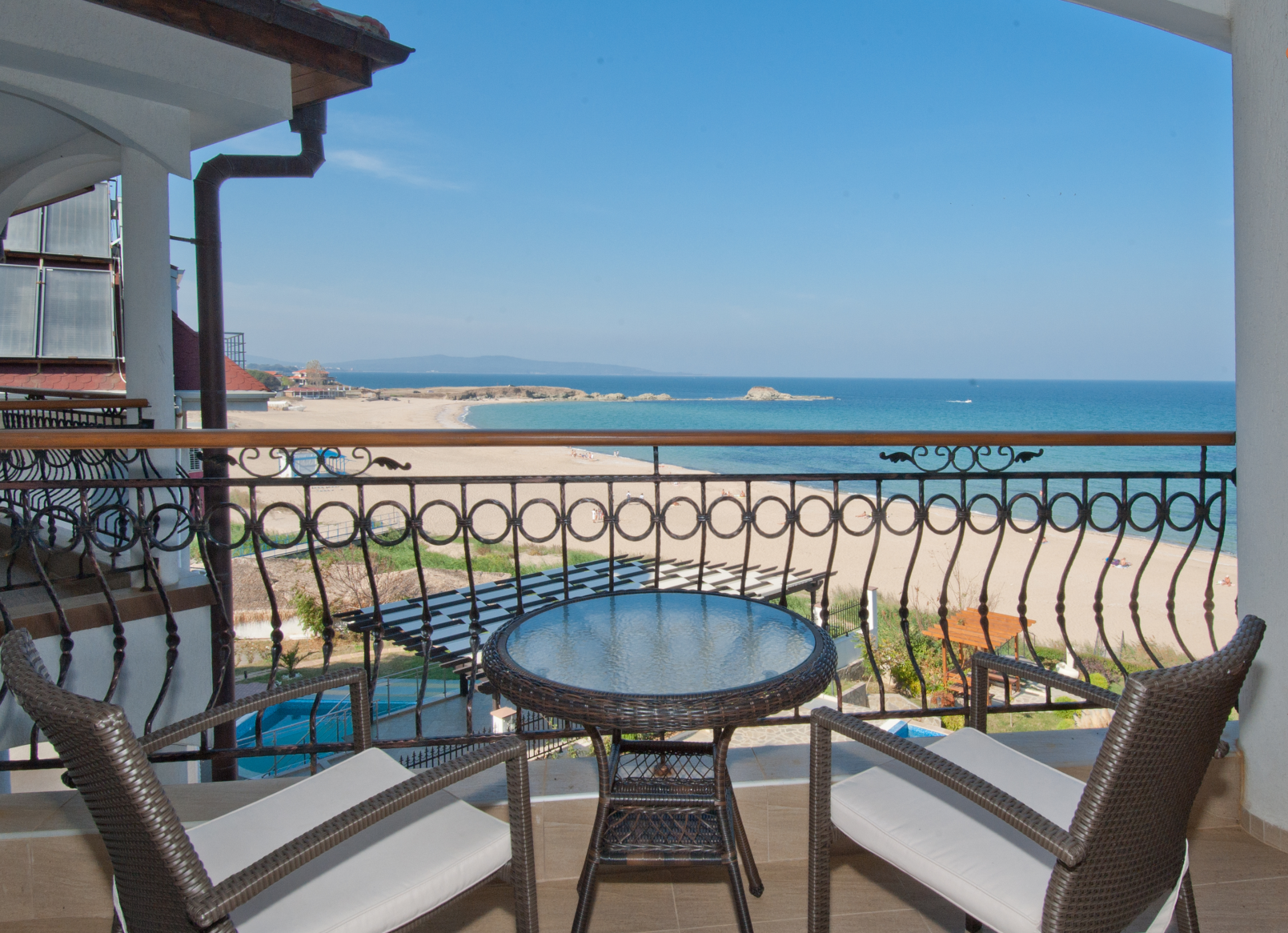 В отеле номера: 9 студий (макс. 2+1 чел., 35-40 кв.м), 1 апартамент с одной спальней (макс. 2+2/4 чел., 60 кв.м), 2 апартамента с двумя спальнями (макс. 4+1/5 чел., 70 кв.м)