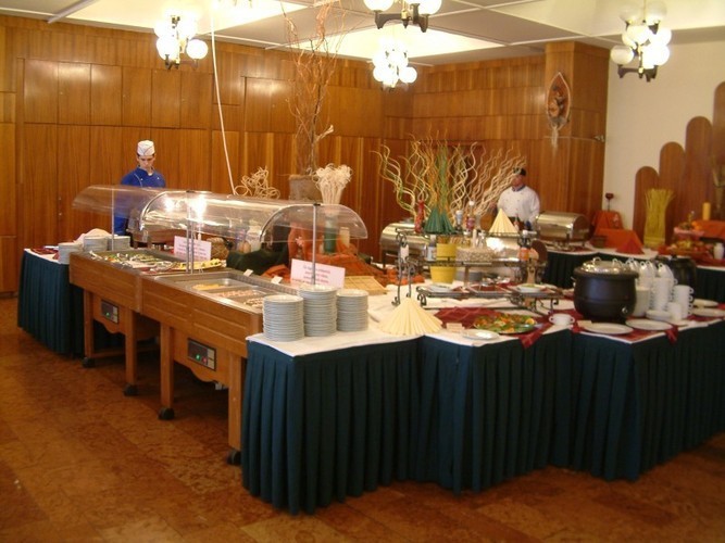 В ресторане отеля Mátyás Király готовят традиционные блюда венгерской и интернациональной кухни, которые можно заказать по системе "шведский стол" или по меню.