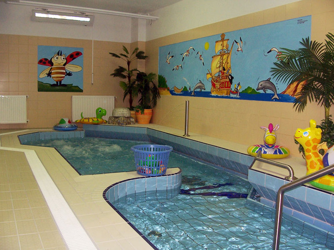 В спа-центре на территории работает бассейн с термальной водой, детский бассейн и открытый бассейн, которым можно воспользоваться в летнее время. Также к услугам гостей финская сауна, инфракрасная кабина, фитнес-центр и массаж.