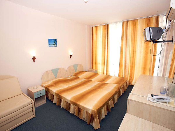 - Dbl (13 кв.м.) – двуспальная кровать/две отдельные кровати, кондиционер, TV SAT, телефон, мини-бар ($), доступ в интернет, балкон, душ, фен, косметический набор в ванной, сушилка для белья, пол – ковролин.