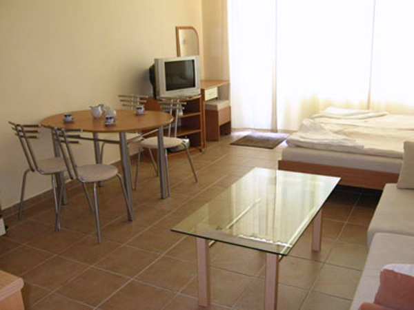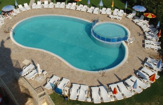 Отель «Аквамарин» расположен в восточной части курорта Солнечный Берег. В отеле 104 апартамента