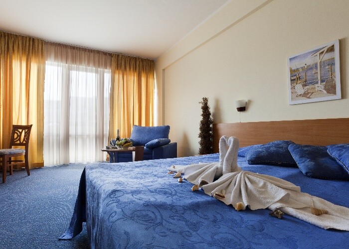 Комплекс «Калимера Клуб» 4* расположен на тихой улице недалеко от центра курорта Солнечный Берег. Комплекс состоит из отелей "Rodopi" и "Zwete" и окружен красивым садом. Отель предлагает к проживанию 363 номера следующих категорий: двухместные номера в отелях "Rodopi" и "Zwete" (площадью около 24-27 кв.м.);