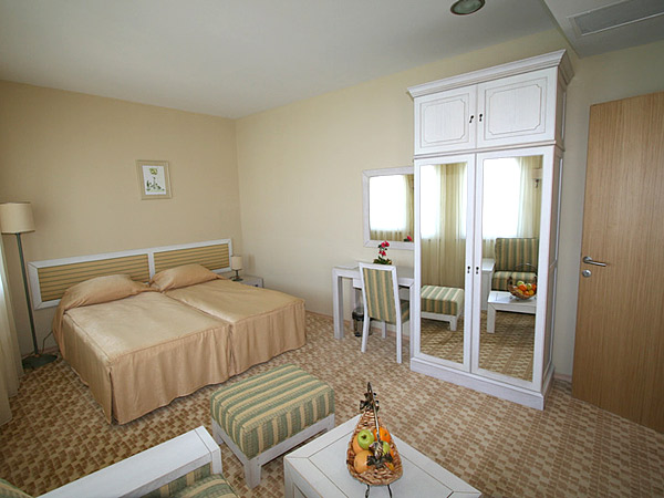 - Dbl (20 кв.м.) – вид на море/вид на парк, две отдельные кровати, кондиционер, TV SAT, телефон, мини-бар ($), балкон, ванна, фен, косметический набор в ванной, сушилка для белья, пол – ковролин.