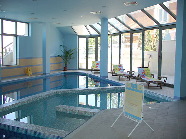 - Закрытый плавательный бассейн, зонт и шезлонг у бассейна;