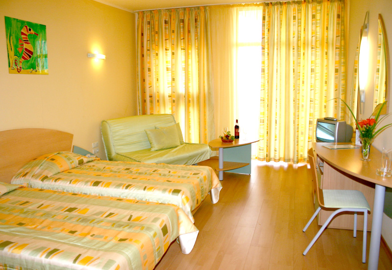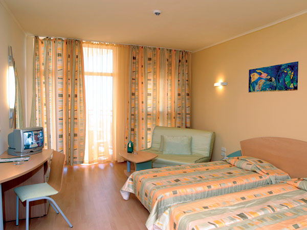 Расположен в парке, в тихом месте курорта Золотые Пески. Категории номеров: 258 двухместных стандартных, 17 Junior Suite, 12 апартаментов с одной спальней