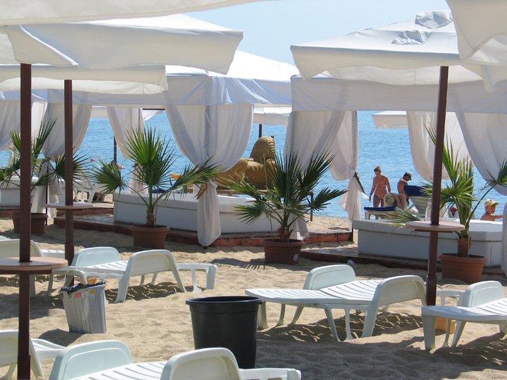 Песчаный пляж "Кабакум", в 300 метрах от отеля. На пляже - лежаки и зонты