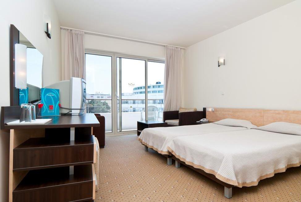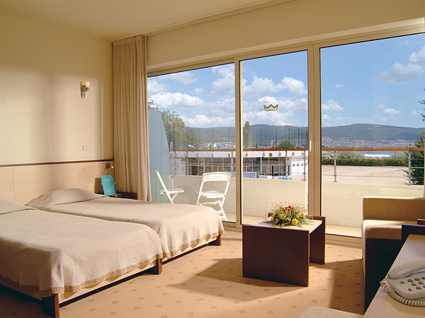 Отель расположен на первой линии курорта Солнечный Берег. В номере 348 двухместных стандартных номеров