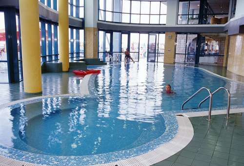 - Открытый и закрытый бассейны, зонты и лежаки у бассейна;