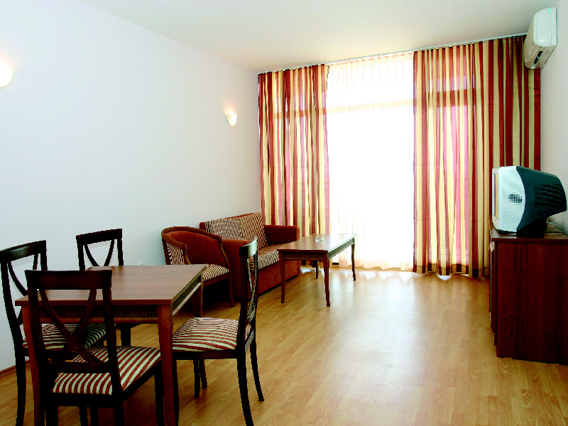 - A1bedroom – спальня, гостиная (межкомнатная дверь), две отдельные кровати, доп. место - диван-кровать, оборудованный кухонный бокс, мини бар ($), холодильник, душ, фен, косметический набор в ванной, сушилка для белья, пол – паркет, плитка.