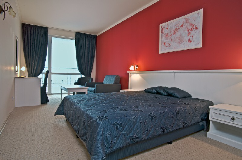 - Dbl (25 кв.м.) – вид на море/вид на парк, двуспальная кровать, кондиционер, TV SAT, телефон, мини-бар ($) , доступ в интернет ($) , балкон, ванна, фен, халат/тапочки, косметический набор в ванной, сушилка для белья, пол – ковролин.