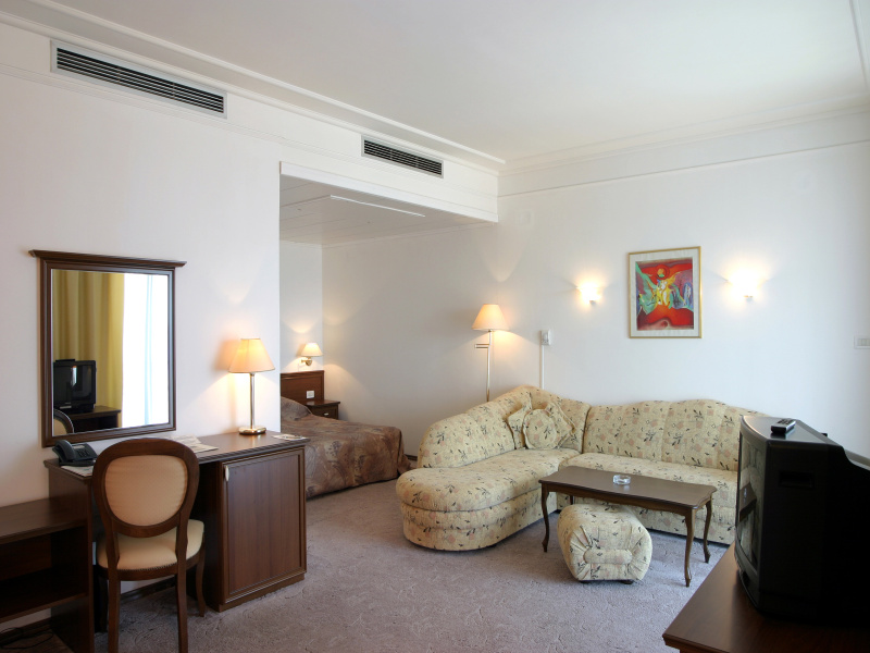 DblNoBalcony (27 кв.м.) – двуспальная кровать/две отдельные кровати, сушилка для белья. DblBalcony (22 кв.м.) – двуспальная кровать/две отдельные кровати, сушилка для белья. DblLarge (48 кв.м.) – двуспальная кровать/две отдельные кровати, сушилка для белья. A1bedroom Lux (85 кв.м.) – спальня, гостиная с мягкой мебелью (межкомнатная дверь), двуспальная кровать, доп. место - диван-кровать, письменный стол, электрочайник. Во всех номерах: кондиционер, спутниковое ТВ, телефон, мини-бар ($), сейф, доступ в интернет, пол – ковролин; Ванна, душ, фен, халат, косметический набор в ванной; Балкон (кроме DblNoBalcony)
