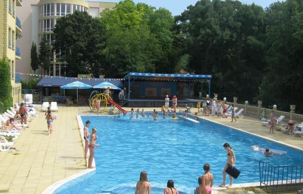 - Открытый бассейн, зонтики и шезлонги у бассейна – бесплатно;