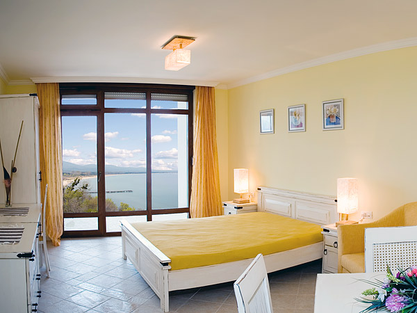 - Studio (40 кв.м.) – двуспальная кровать/две отдельные кровати, доп. место - диван-кровать, пол – ковролин, плитка.