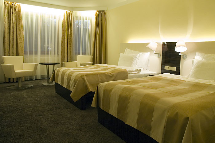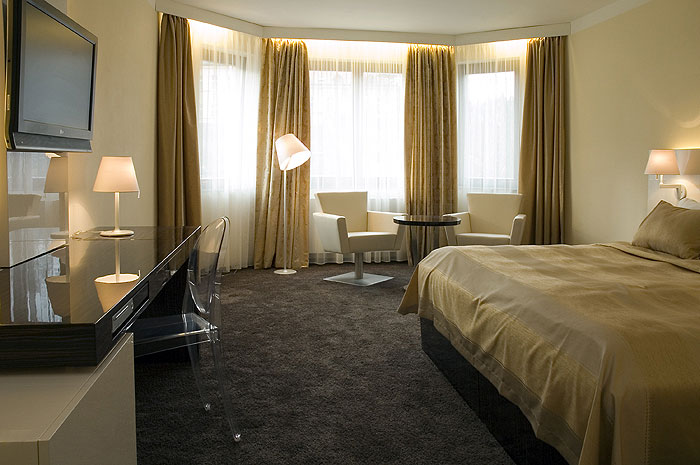 Ванная комната, туалет, телефон с прямым выходом, подключение к интернету 10€/день, холодильник-минибар, LCD телевизор с сателитными программами (российские РТР и ОРТ), DVD, сейф, фен, халаты и тапочки. В номерах Business и Luxury кондицирование. В номерах Business душ и вихревая ванна.